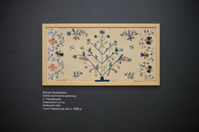У центрі виставки – «Древо» української дизайнерки Вікторії Якуші (Yakusha Design, Faina). Це 18 сталевих панелей, де повторюється мотив дерева життя. На кожній панелі – ім’я майстрині, яка розписувала хату: архівні хатні розписи зібрали з малюнків, які на початку 20 століття врятували етнографи. На виставці їх розмістили довкола залу.