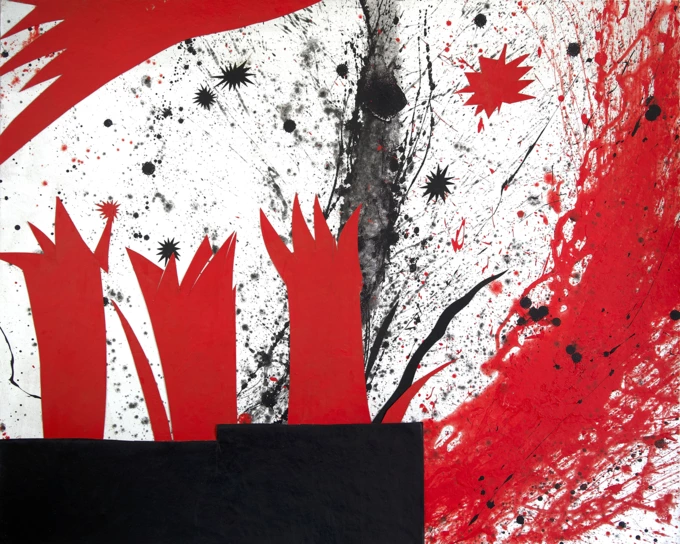 Перші ескізи для робіт на виставці Володимир Кузнецов створив після того, як знайома волонтерка повідомила – є потреба зібрати кошти на турнікети. Митець почав створювати роботи, які можна було б розіграти за донати: доволі прямі образи, як-от кров чи вогонь, поступово ставали фігуративними й абстрактними композиціями. Вийшли серія аплікацій і велике панно-ширма в чорному, білому й червоному кольорах.