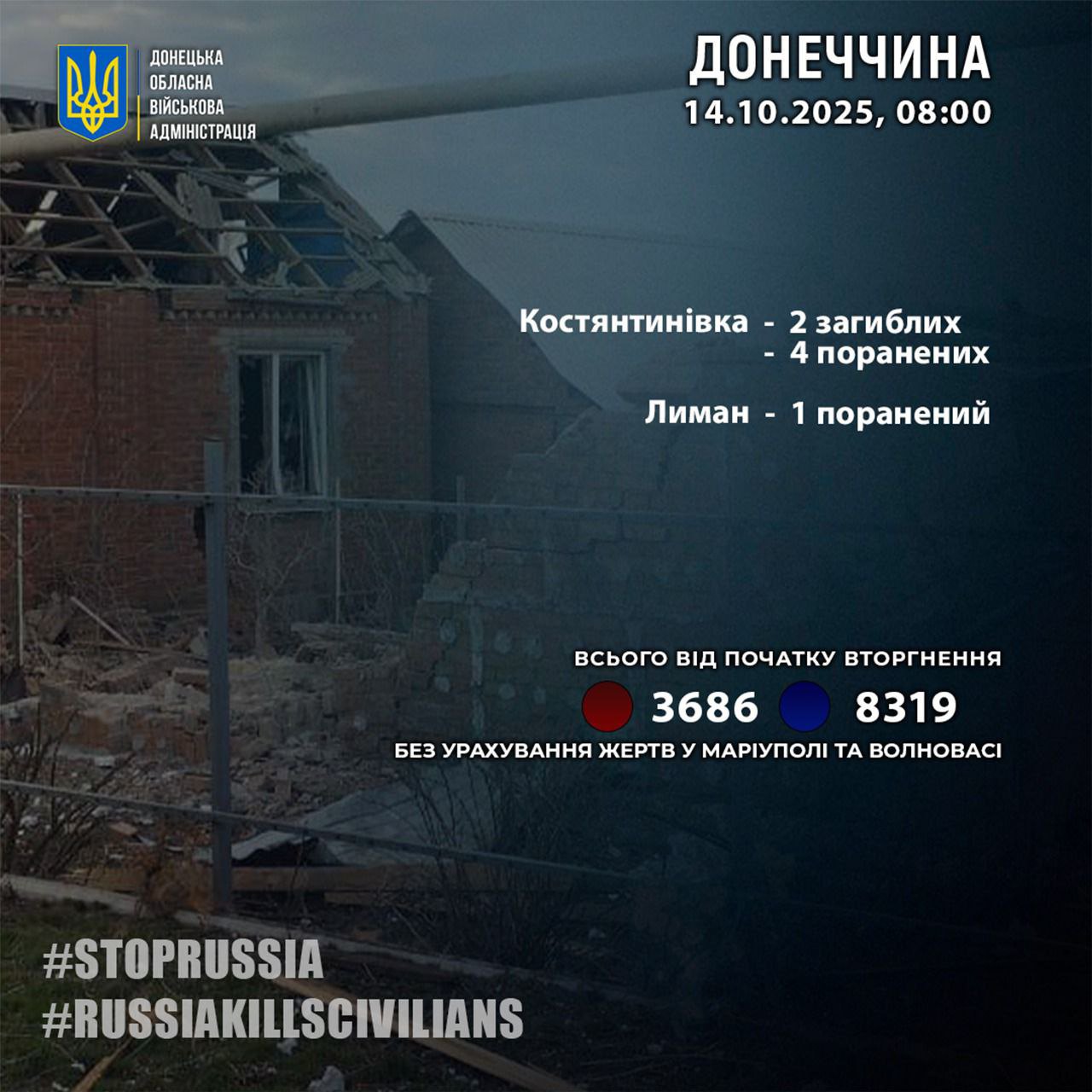 За минулу добу 13 жовтня росіяни вбили у Донецькій області ще двох людей.