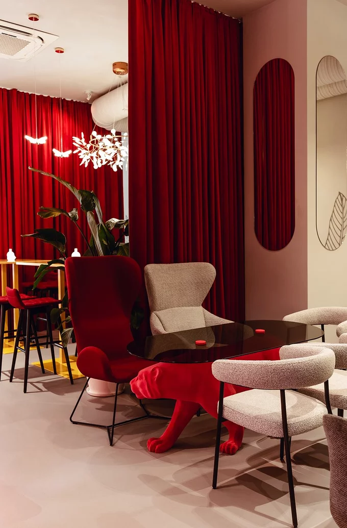 Дизайн створила архітекторка й дизайнерка інтер’єру Ольга Дзюба (Guramma, Corvina). Символом закладу обрали зайця, який у японській міфології символізує достаток та насолоду. В інтер’єрі акцент на жовті та бордові відтінки, довгу барну стійку й артові елементи – триметрового жирафа, ілюстрації з тваринами та рослинними мотивами.
