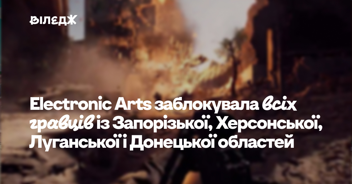 Компанія Electronic Arts заблокувала всіх гравців із тимчасово окупованих територій Запорізької, Херсонської, Луганської й Донецької областей, повідомили у службі підтримки EA.