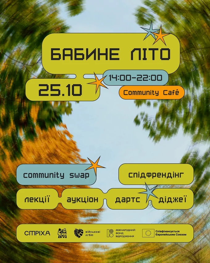У Community Cafe на Кирилівській відбудеться третій маркет «Бабине літо» із community swap одягом та аксесуарами, спідфрендінгом, лекціями, аукціонами та грою в дартс під диджей-сети.