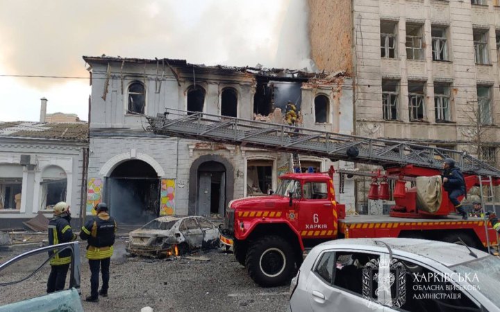 • у Харкові пошкоджено приміщення дитячого садочка, 11 автомобілів, багатоквартирний будинок, 3 будівлі, дорожня техніка;