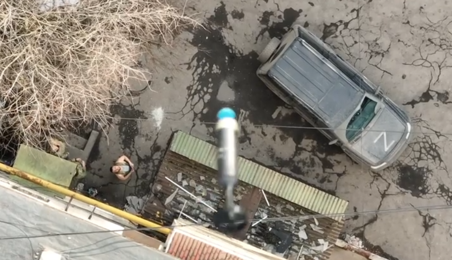 Коптер 110-ї ОМБр залетів в тил до окупантів та розбавив їх рутину скидом боєприпасу прямо під під’їзд.