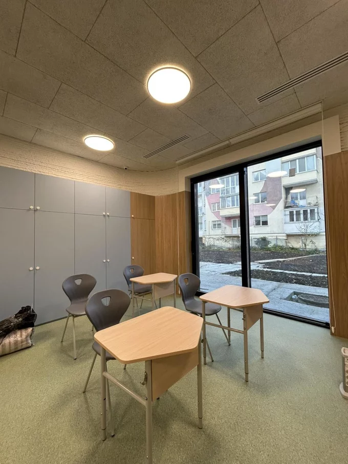 Наразі облаштовують меблі, покриття тераси та дитячий майданчик із батутом. Відкриття школи планують до кінця 2025 року, каже Любомир Зубач.