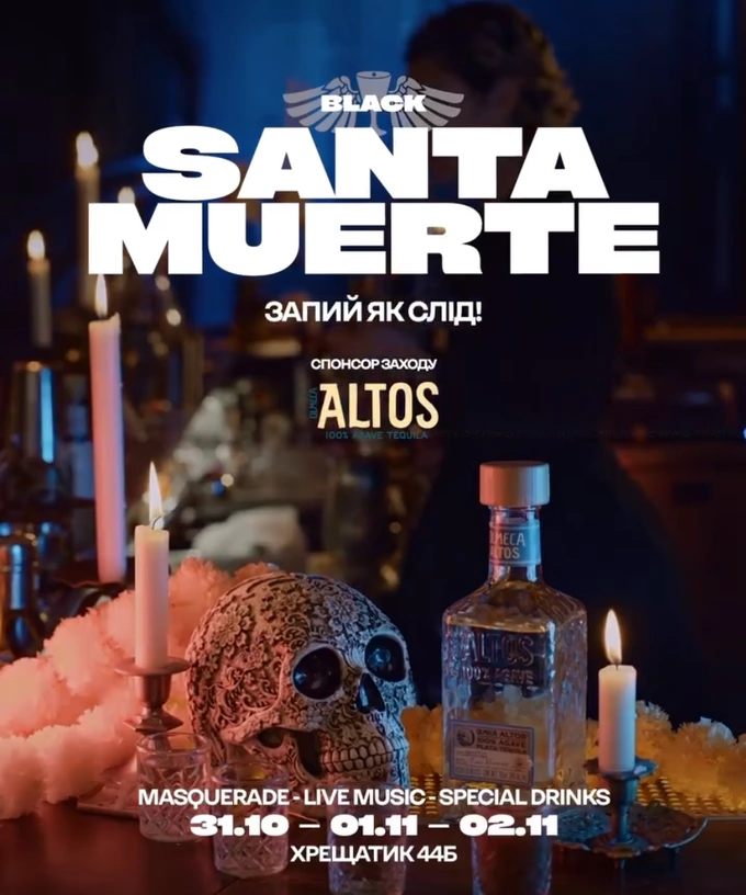 У «Бармен Диктаті» до Гелловіну відбудуться «містичні вихідні»: у п’ятницю буде маскарад із живим виступом Real Band, у суботу – атмосфера Santa Muerte з текілою, танцями й сетами від «DJ Найк», а в неділю – «фінальний акорд із Dislocadoc».