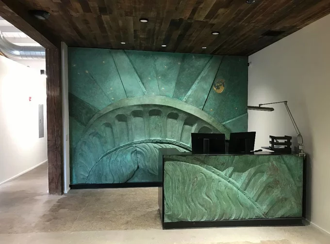 Фрагмент статуї Свободи з металу і міді, над яким працював Дузінкевич, для приватного замовлення. Фото з резиденції Immersive Van Gogh Exhibit New York City