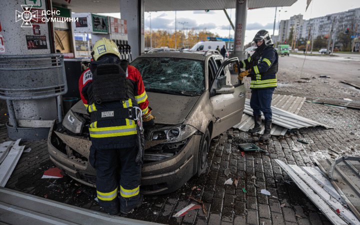 У МВС України уточнили, що російські війська вдарили дроном по АЗС у Сумах, постраждали 4 людини.