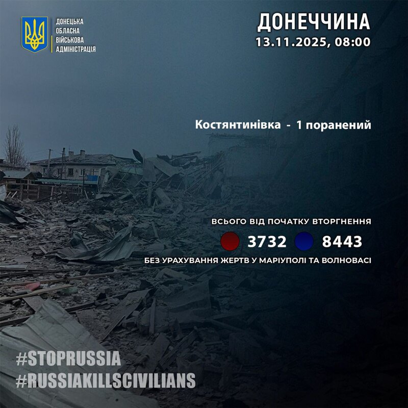 “За 12 листопада росіяни поранили 1 жителя Донеччини”, – зазначив він.
