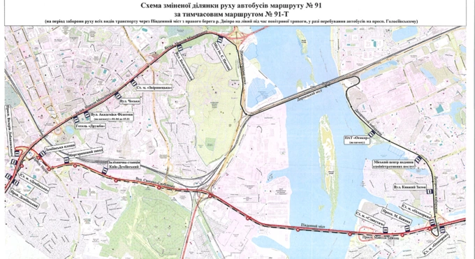 Так само автобус №91 їздитиме за маршрутами 91-Д та 91-Т під час повітряної тривоги.