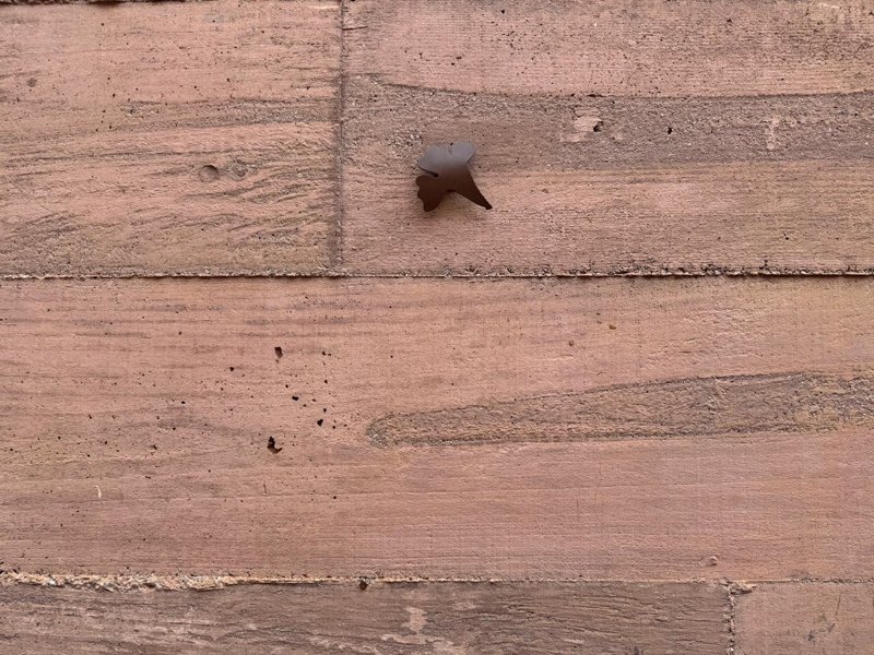 Невеликий простір, схожий на каплицю, відкривається назовні, на територію меморіалу. Шлях, на який вказує павільйон, — це нерівний розлом завдовжки 230 метрів — буквальний і символічний розрив, який прорізає місцевість і вказує на точне місце прориву дамби.