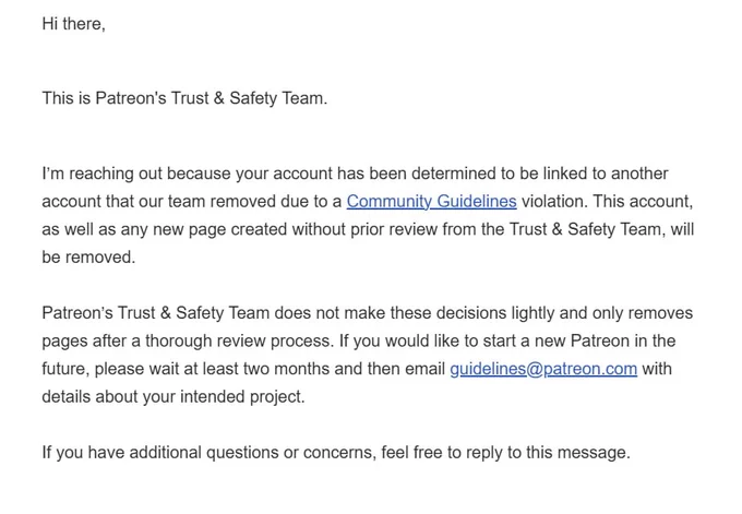 Офіційний лист від Patreon. «Телебачення Торонто»