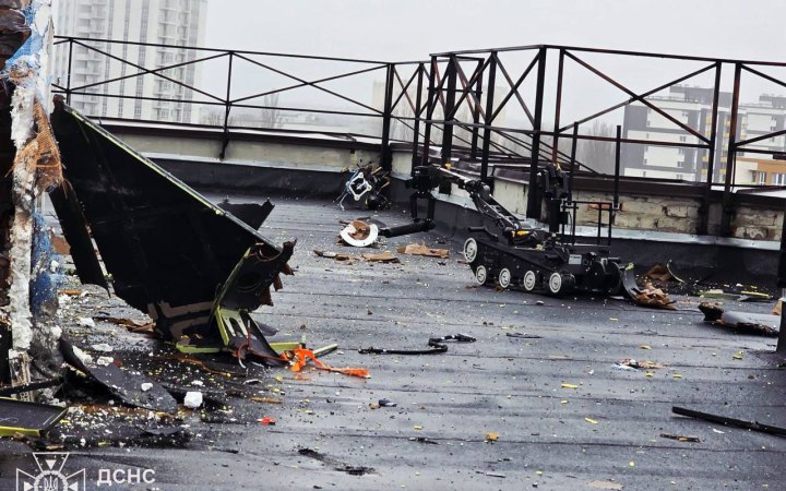 Для проведення робіт рятувальники огородили небезпечну зону та евакуювали людей з верхніх поверхів. Щоб мінімізувати ризики, оператори роботизованих систем поєднали роботу дронів і багатофункціонального робота, який діяв навіть на даху будинку.