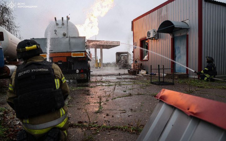Російська армія у Херсоні завдала повторного удару по рятувальниках під час гасіння пожежі, яка виникла після удару ворожого дрона по автозаправці.