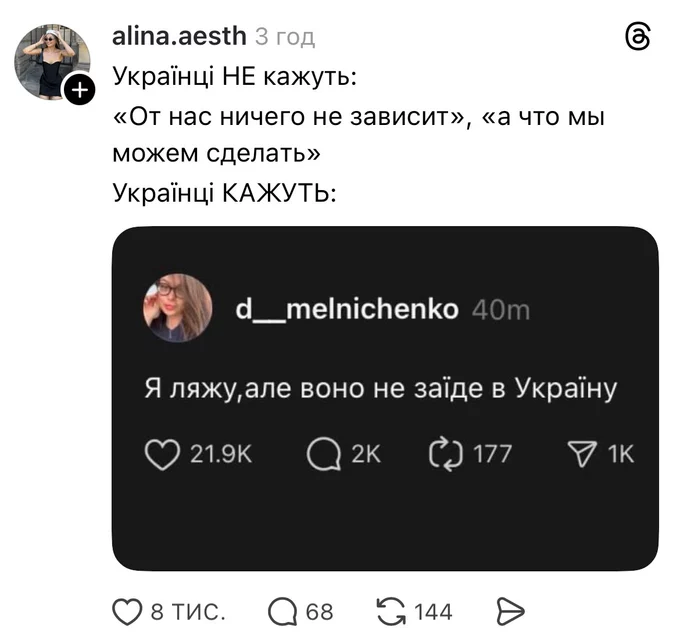 Все почалося з поста у Threads українки Дарʼї Мельниченко, яка їхала в одному автобусі з італійцем та його дружиною – українкою. Під час зупинки він почав їй розповідати про «погану Україну, поганого президента та про те, який Путін молодець».
