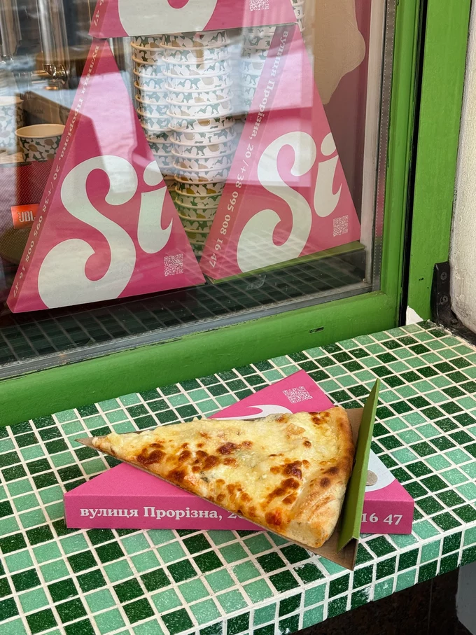 Si Slice Pizza – це формат міського віконця де подають піцу. Піцерію відкрили засновники Si Kyiv і Lip Lip bistro. У команді розповідають, що хотіли створити місце, де можна взяти шматок піци «на ходу», без втрати якості продукту та сервісу.