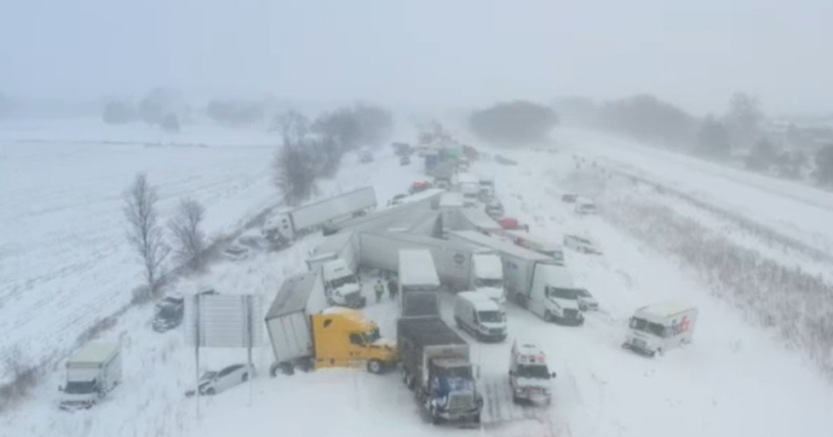 BREAKING: Drone footage reveals a massive pileup involving more than 100 vehicles in Michigan, with injuries reported as hazardous winter conditions grip the area.