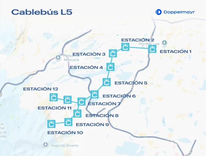 На ній буде 12 станцій, які сполучатимуть райони Альваро Обрегон, Магдалена Контрерас і Беніто Хуарес. Канатна дорога матиме 462 кабіни, у яких зможе одночасно їхати десять людей. Вона зможе перевозити три тисячі пасажирів на годину, що скоротить час подорожі на понад 50%.