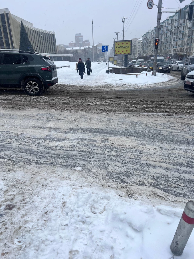 Після снігопаду у Києві не встигли розчистити дороги: автомобілісти стоять у заторах, пішоходи не можуть пройти