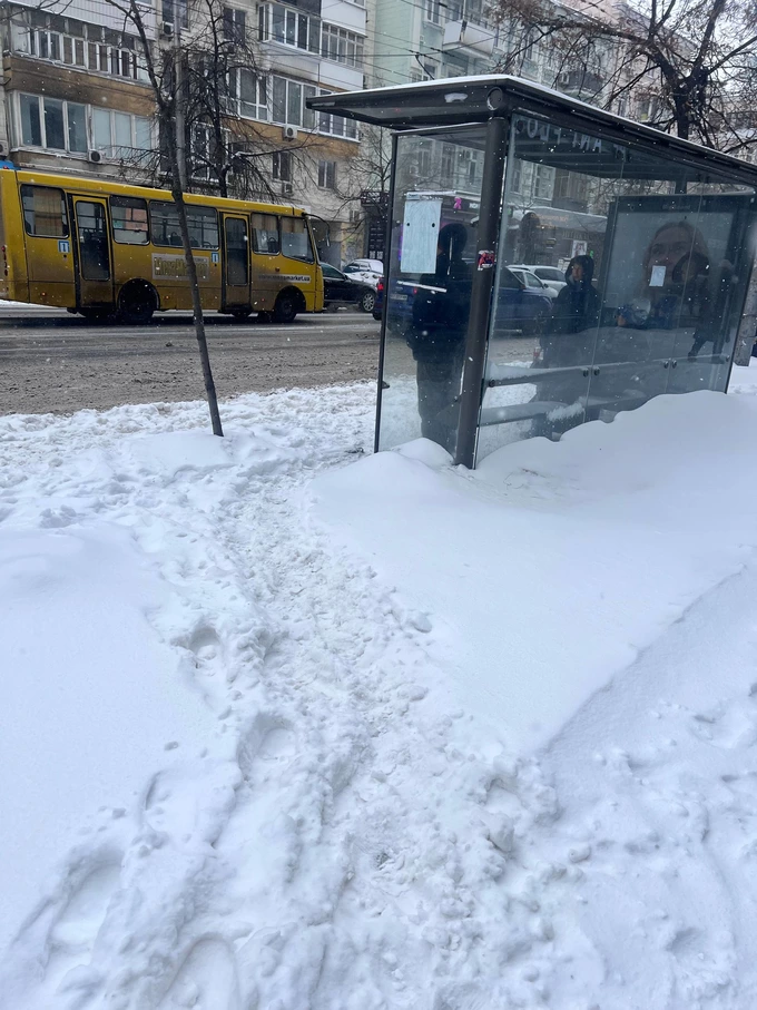 «Біля станції метро Либідська розчистили територію, але підходи до неї завалені снігом. Через це люди не можуть пройти. Також на вулицях мало громадського транспорту: автобуси інколи не зупиняються на зупинках, а маршруток дуже мало і вони переповнені», – додає вона.