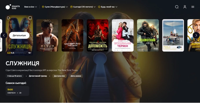 Ми перевірили, чи доступні сеанси в Сумах, Харкові та Дніпрі 10 лютого. Попри відключення, завітати на фільми все ж можна. Скриншот Village