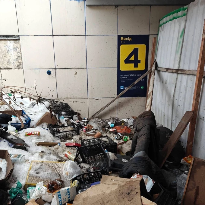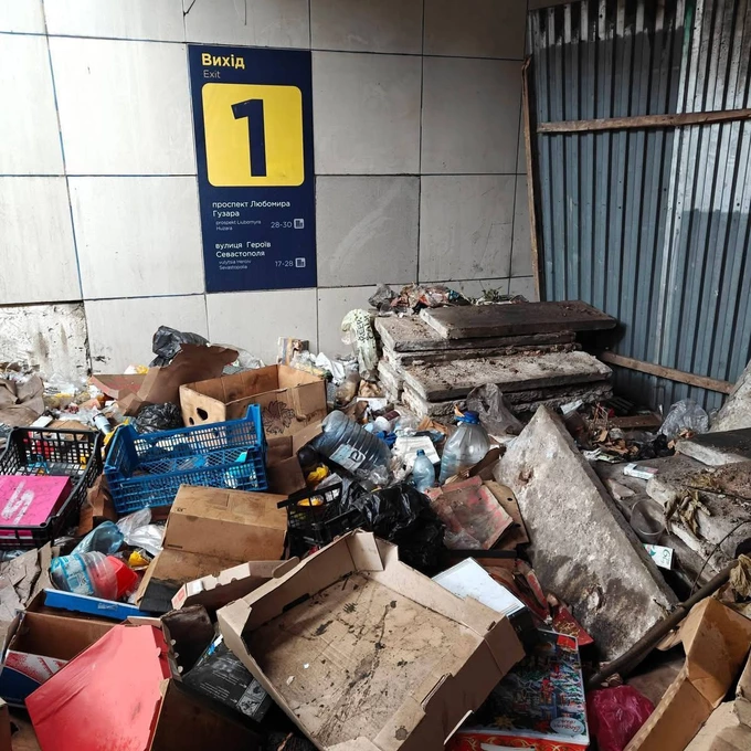 На сходах і прольотах станції лежить різне сміття – порожні пляшки, ящики, коробки, одяг та інші відходи. Водночас поруч зі станцією розташовані десятки різних лікарень, пояснила Семенова.