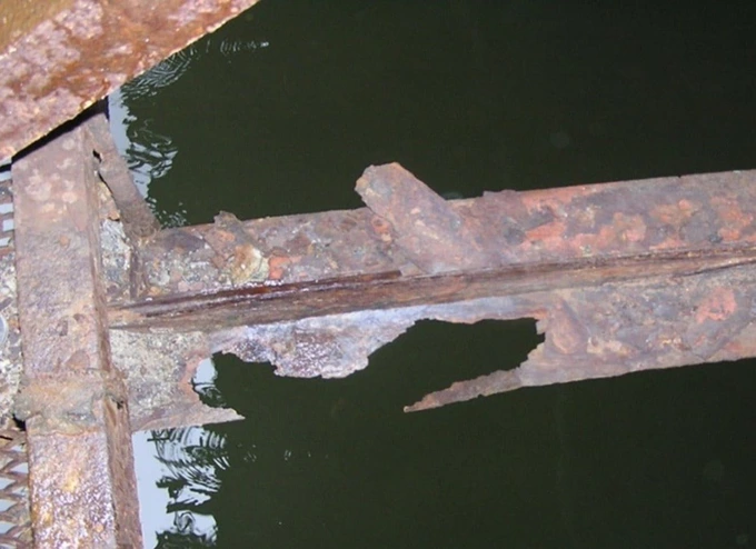 Корозія понад 50% поперечного перерізу горизонтальної в’язі [каркас, що з’єднує конструкції горизонтально]. НАН України