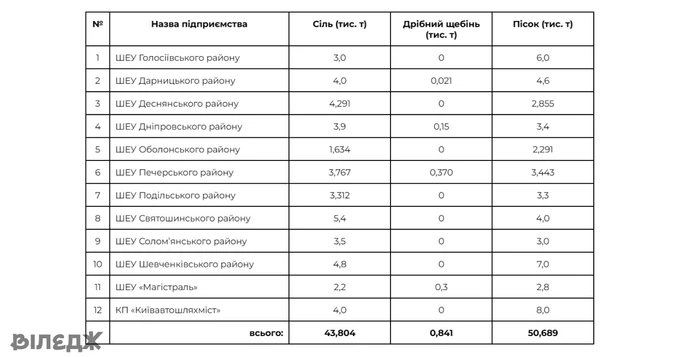 У «Київавтодорі» також розказали, скільки матеріалів запланували для протиожеледних заходів цієї зими. У плані заготівлі наведено нові закупівлі та залишки з попереднього сезону – це щорічна практика.