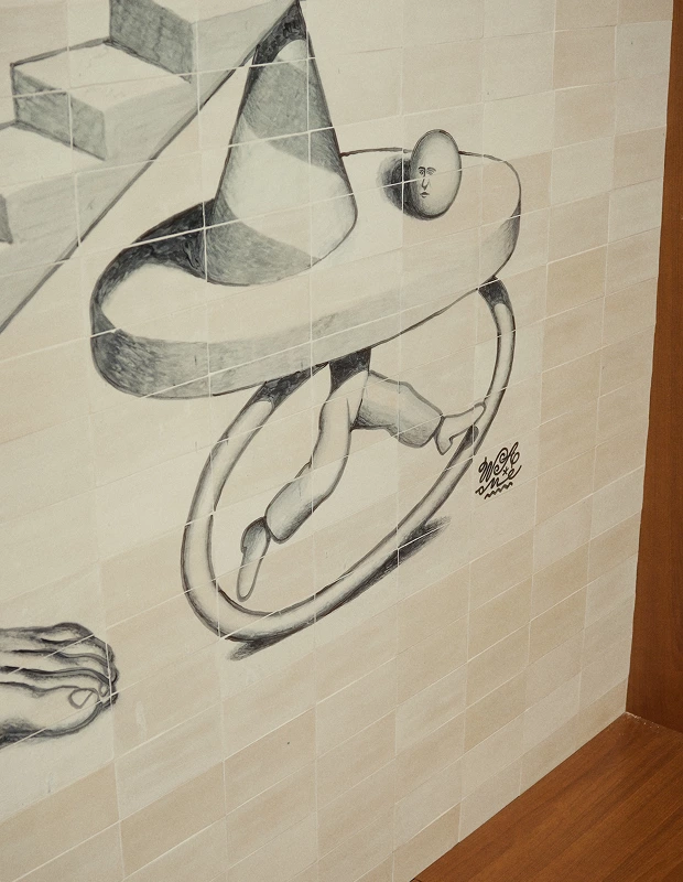 Митець уперше зробив свою роботу в техніці азулежу. Це мистецтво розпису керамічних плиток за принципом майоліки, що передбачає нанесення зображення на цинкову поливу, додавання глазурі та подальший випал.