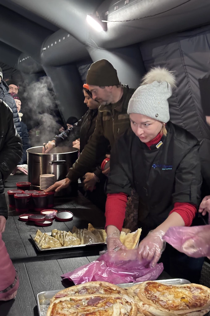 Основа проєкту – автономний фудтрак, укомплектований як професійний ресторан: котли, пароконвектомати, морозильні камери та генератор. Така конструкція дає змогу команді не залежати від наявності світла чи води в постраждалих районах. «Для зими ми передбачили все: генератор, запас води, підключення до каналізації. Навіть у повному блекауті кухня продовжує працювати», – каже Олег Бібіков.