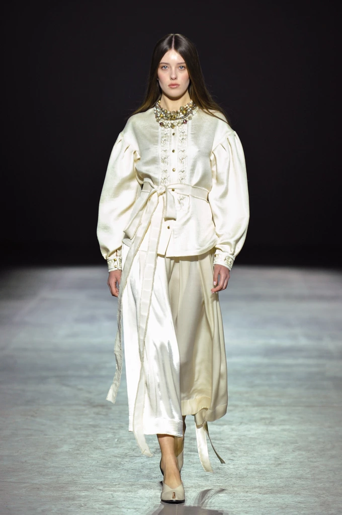 Przhonska шукали натхнення у вічному циклі переходу темряви у світло. Театральний показ розділили на три частини: ніч, час перед світанком і біле світло ранкового сонця. На початку моделі виходили на подіум у темних кейпах, спідницях і пальтах із важкої вовни й жакарду. Що ближче до кінця шоу, то легшими ставали тканини, а кольори світлішали. Зʼявлялися яскраві відтінки, більшала кількість аксесуарів. Останні образи колекції, виконані в білому монохромі, символізували новий початок і перехід до неминучого світлого майбутнього.