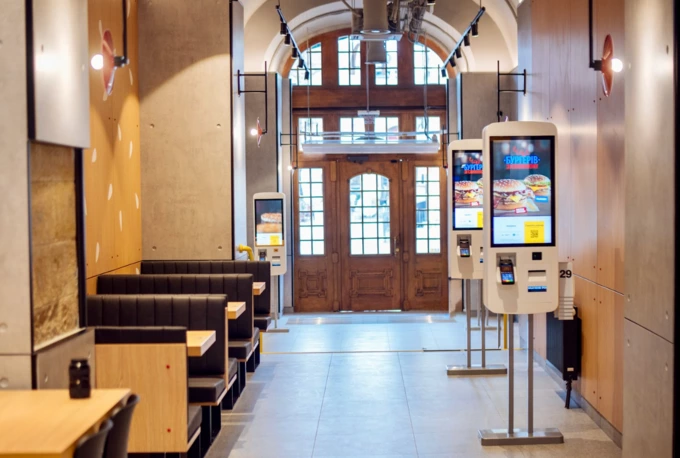 Ресторан площею 935 м² розрахований на 38 місць на першому поверсі та 148 у підвальному. Зробити замовлення у закладі можна щодня з 7:00 до 23:00 за допомогою семи терміналів самообслуговування в залі, через сервіс доставки «МакДелівері» або з допомогою функції «мобільне замовлення».
