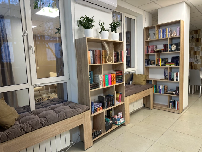 Простір має відкриту бібліотеку та велику залу із 25 посадковими місцями, яка поділена на декілька зон. Також на локації проводитимуть лекції, книжкові клуби та майстер-класи.