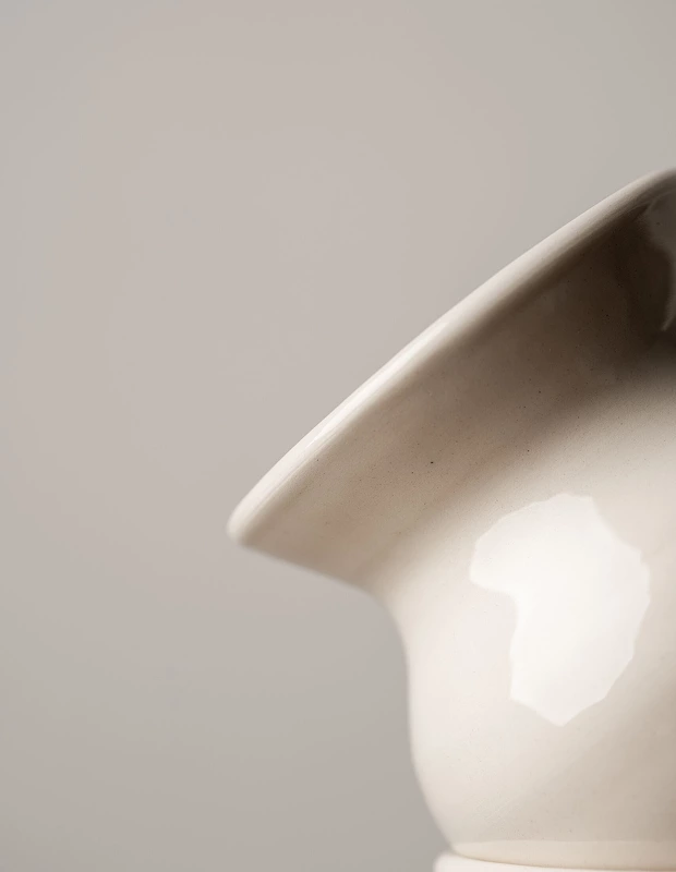 Їх виготовляють вручну в техніці майолікової кераміки, тому двох ідентичних чашок немає, кажуть в команді. Завдяки тюльпаноподібній формі каву зручніше аерувати, а звужений верх зберігає аромат, тому його легше відчути і дослідити смакові дескриптори.