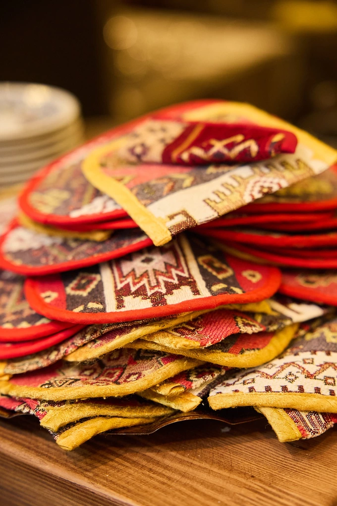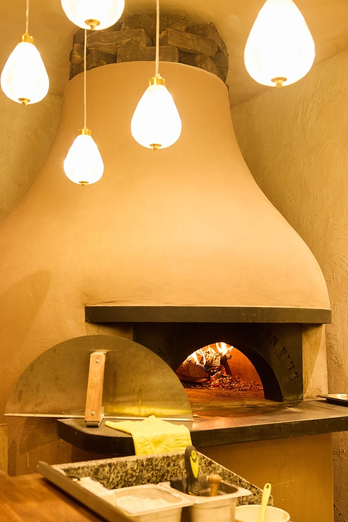 Простір розділений на загальні зали та кілька відокремлених зон для великих компаній. Одна з таких зон вміщує до 30 осіб і відокремлена від основного простору ширмою. На першому поверсі є дров’яна піч, яку залишили від попереднього закладу, але тепер використовують винятково для випікання піде та хліба. На випадок відключень у закладі є генератор, тому ресторан продовжує роботу без світла.