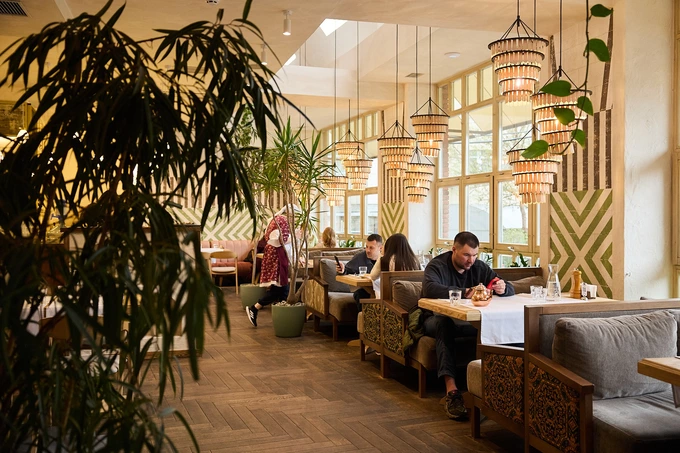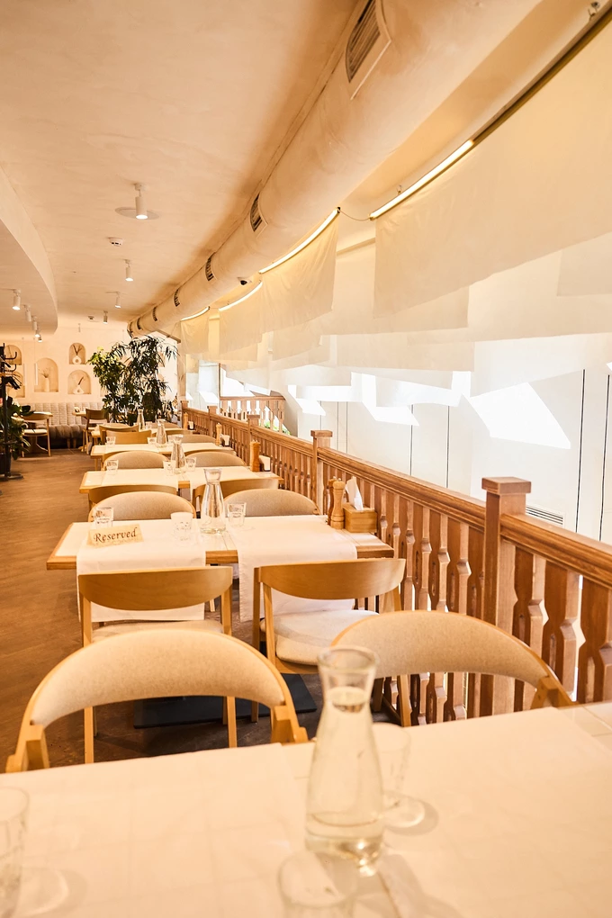Ресторан займає два поверхи та близько 60 посадкових місць, враховуючи літню терасу. Інтер’єр не зазнав радикальних змін, проте команда адаптувала його під візуальний код мережі. Стіни перефарбували у фірмовий білий колір, додали традиційну скібінську кераміку та характерні для бренду килими.