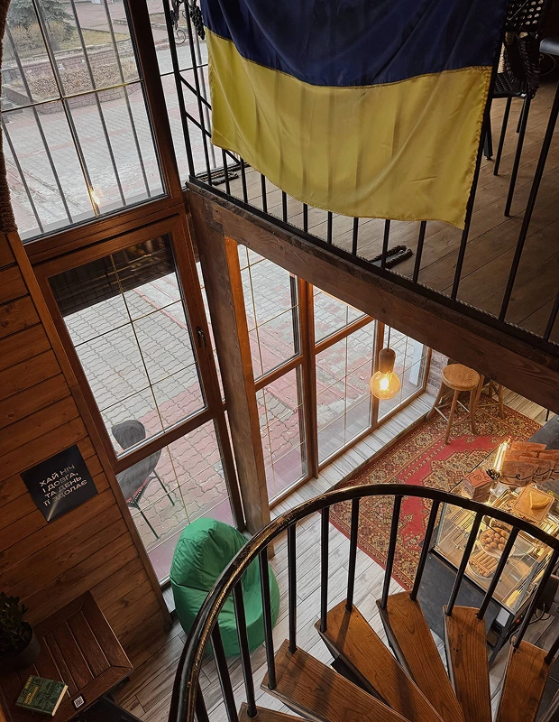 Інтер’єр «збирали по частинах»: радилися із дизайнером та шукали вінтаж в інтернеті й оселях своїх родин. Перший поверх – здебільшого у takeaway-форматі. Другий поверх розрахований на посадку до восьми людей, наразі його допрацьовують.