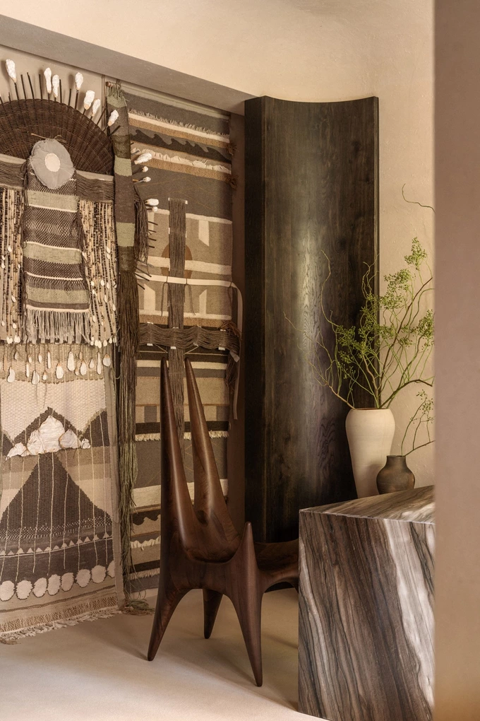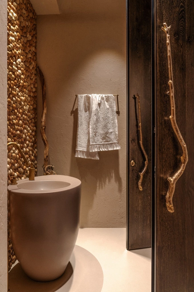 Стіни та стелі вкрили штукатуркою з додаванням конопляних волокон. За словами Долгоп’ятової, цей інтер’єр фокусується на зв’язку із землею та внутрішній силі.