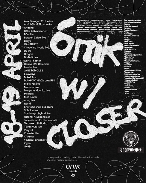 Формація «Опік» і Closer влаштовують дводенний фестиваль позажанрової української музики. На чотирьох сценах виступлять близько 50 артистів і гуртів, які гратимуть електроніку, рок та андеграунд-реп. Крім того, буде танцювальний перформанс на пілоні від Obert. Повний лайнап на обидва дні – тут.
