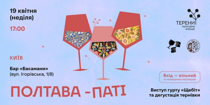 У київському барі «Басамани» відбудеться вечірка, присвячена культурі Полтавщини. Засновник проєкту «Древо» Едуард Крутько прочитає лекцію про місцеві традиції та село Козубівку. Також у програмі – виступ фольклорного гурту «Щебіт», козині сири та коктейлі на основі крафтової тернівки.