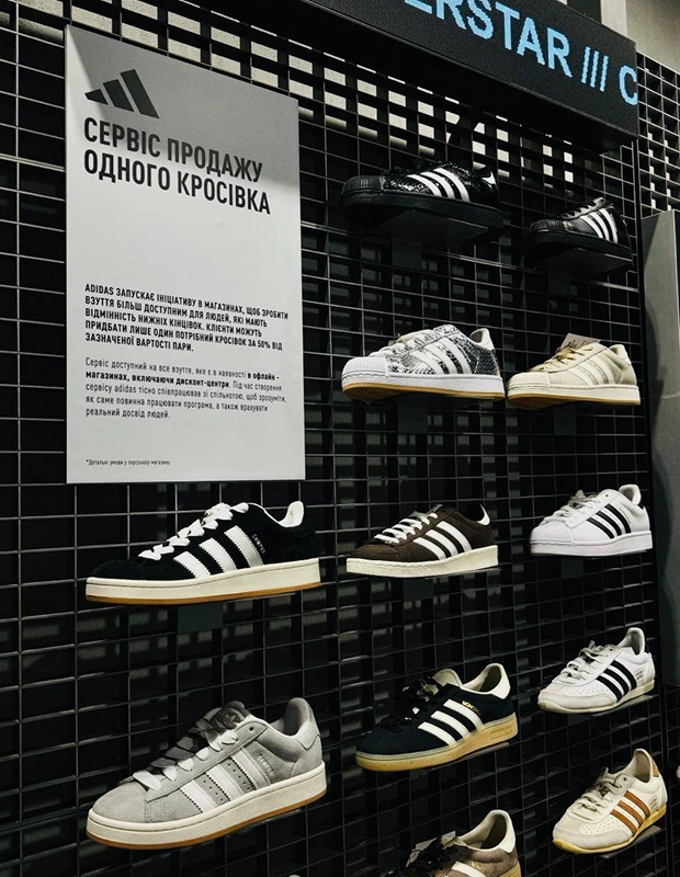 Джерело: Adidas в Україні почав продавати кросівки по одному за половину вартості пари