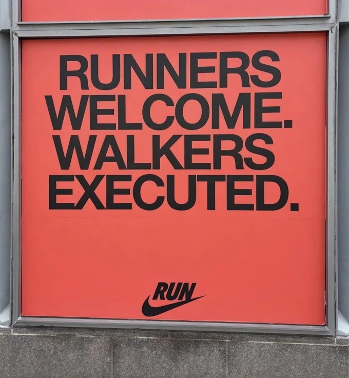 Причиною скандалу став напис у флагманському магазині в Бостоні – «Бігунам раді. До пішоходів терпимі». У соцмережах одразу розкритикували кампанію і сприйняли її як зневажливу. За словами людей, Nike знецінює тих, хто не відповідає ідеальному образу спортсмена.