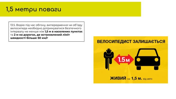 Джерело: «Півтора метра поваги». U-Cycle пропонує зміни до Правил дорожнього руху