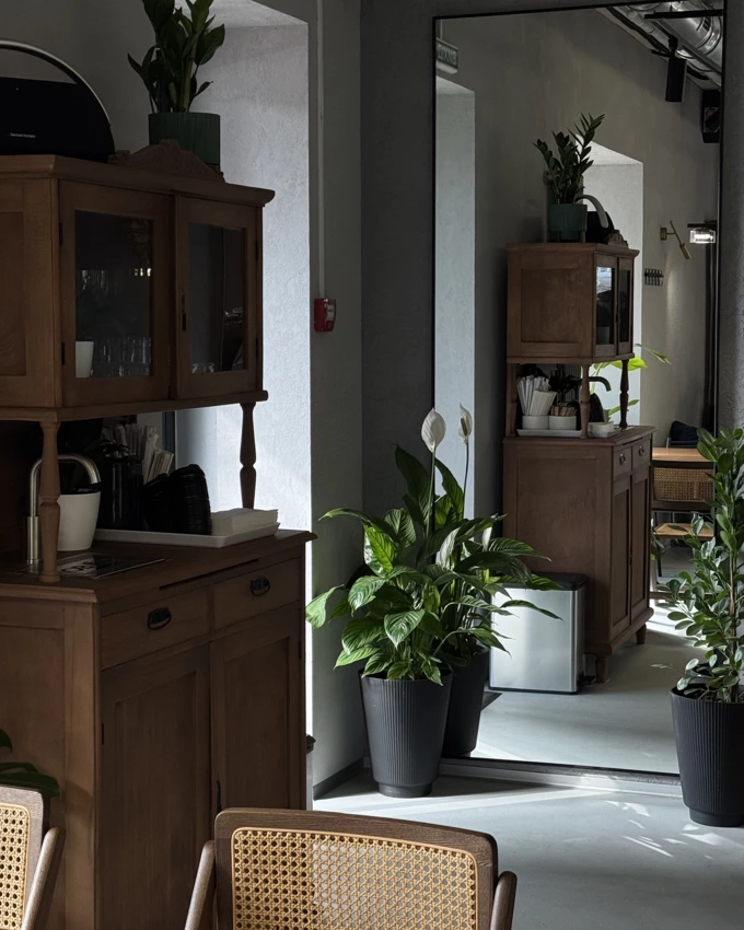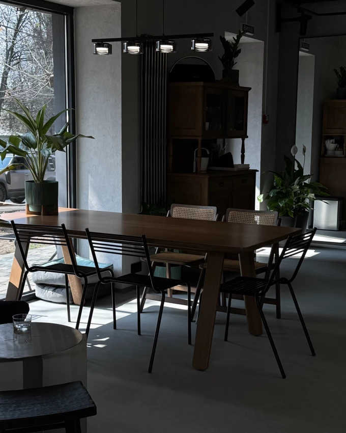 Над дизайном інтер’єру працювала студія key design. Головний акцент зробили на барі-кухні. У закладі: ковдра на підлозі, столи з нержавіючої сталі, «бабусин» сервант та картини на стелі. В залі може поміститися до 24 гостей, а на літній терасі ще 36 людей.