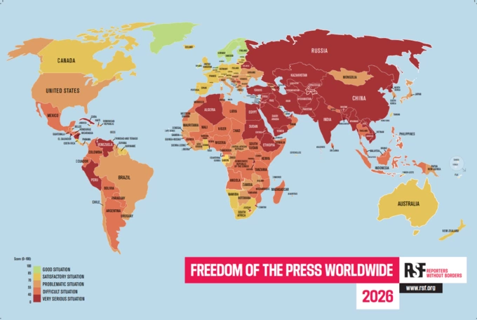 Загалом у 2026 році середній рівень свободи преси у світі впав до найнижчого показника за останні 25 років. Понад половина країн світу опинилася в категоріях зі «складною» або «дуже серйозною» ситуацією.